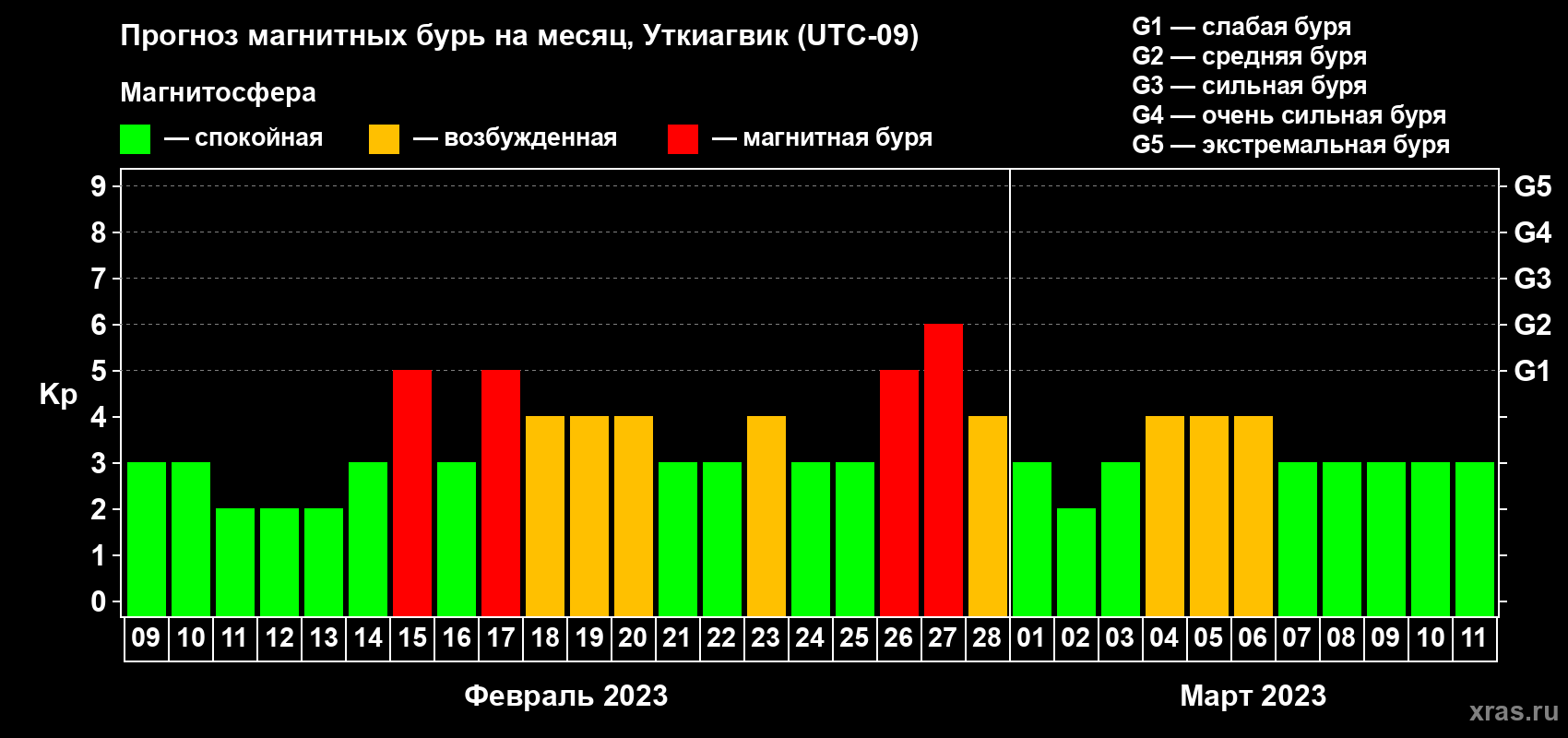 Прогноз магнитных бурь в Уткиагвике — 9 февраля 2023 года