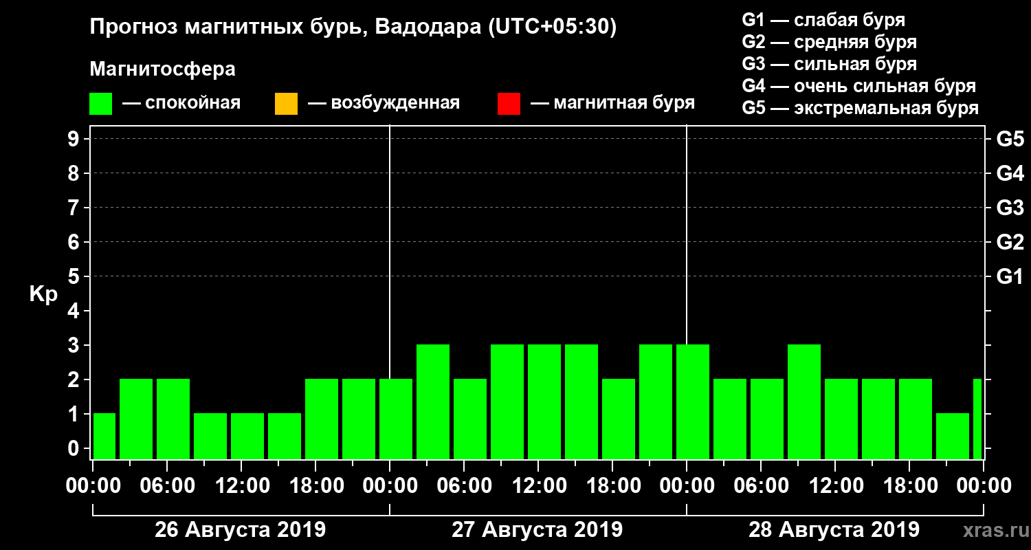 Прогноз магнитных бурь в Вадодаре — 26 августа 2019 года