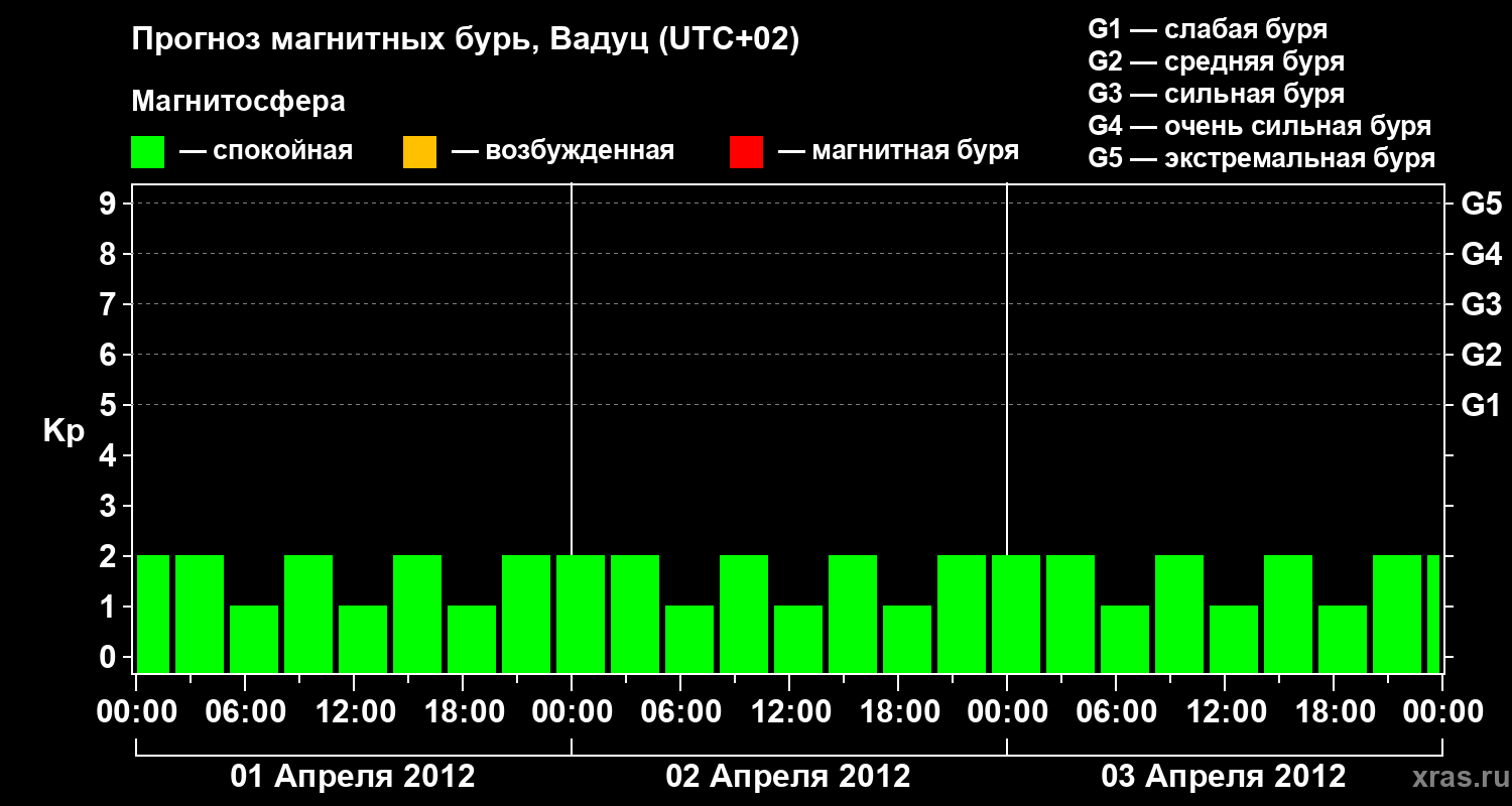 Прогноз магнитных бурь в Вадуце на 1 апреля 2012 года