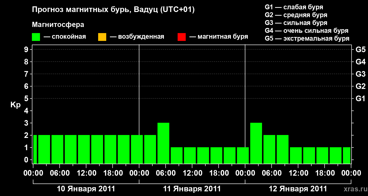 Прогноз магнитных бурь в Вадуце — 10 января 2011 года