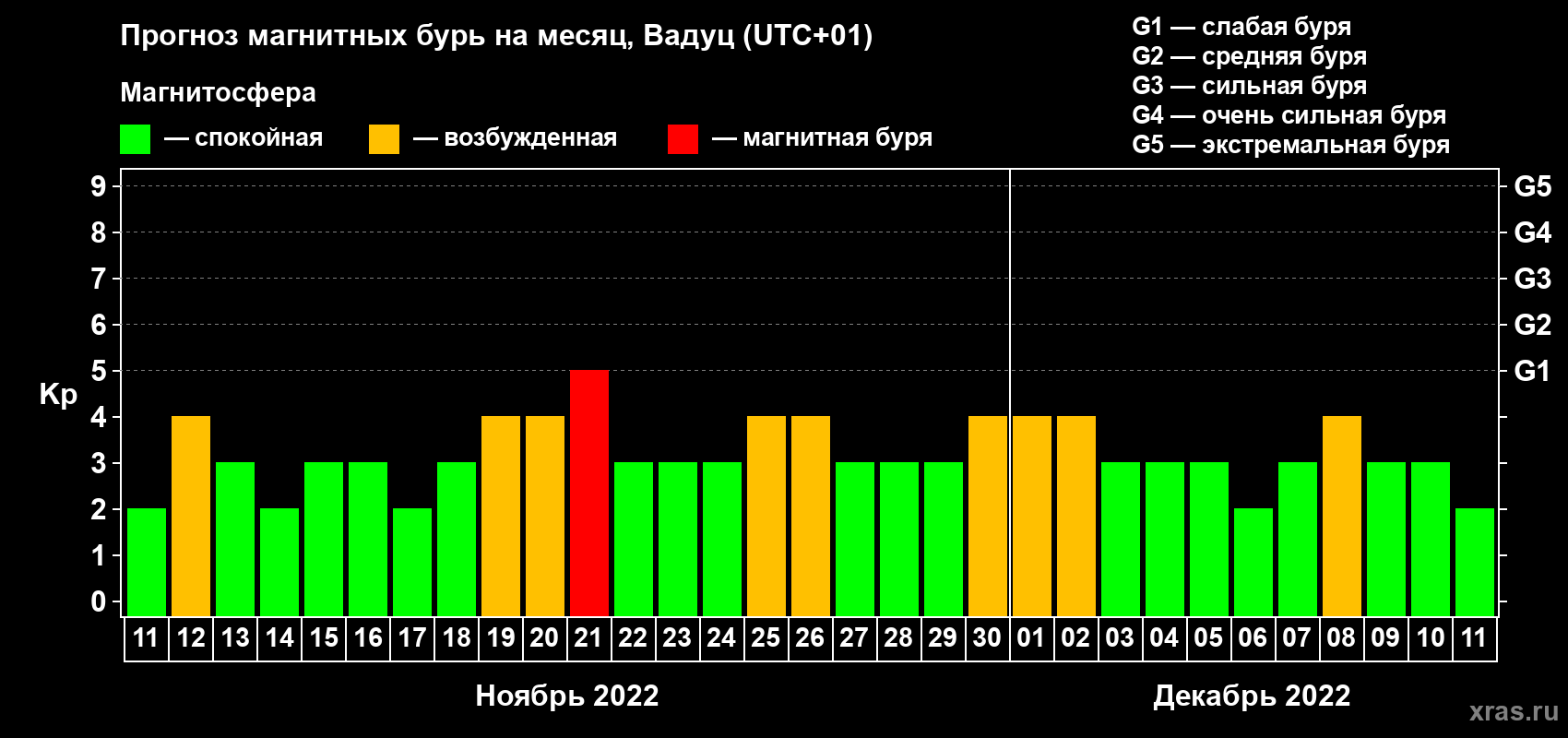 Прогноз магнитных бурь в Вадуце — 11 ноября 2022 года