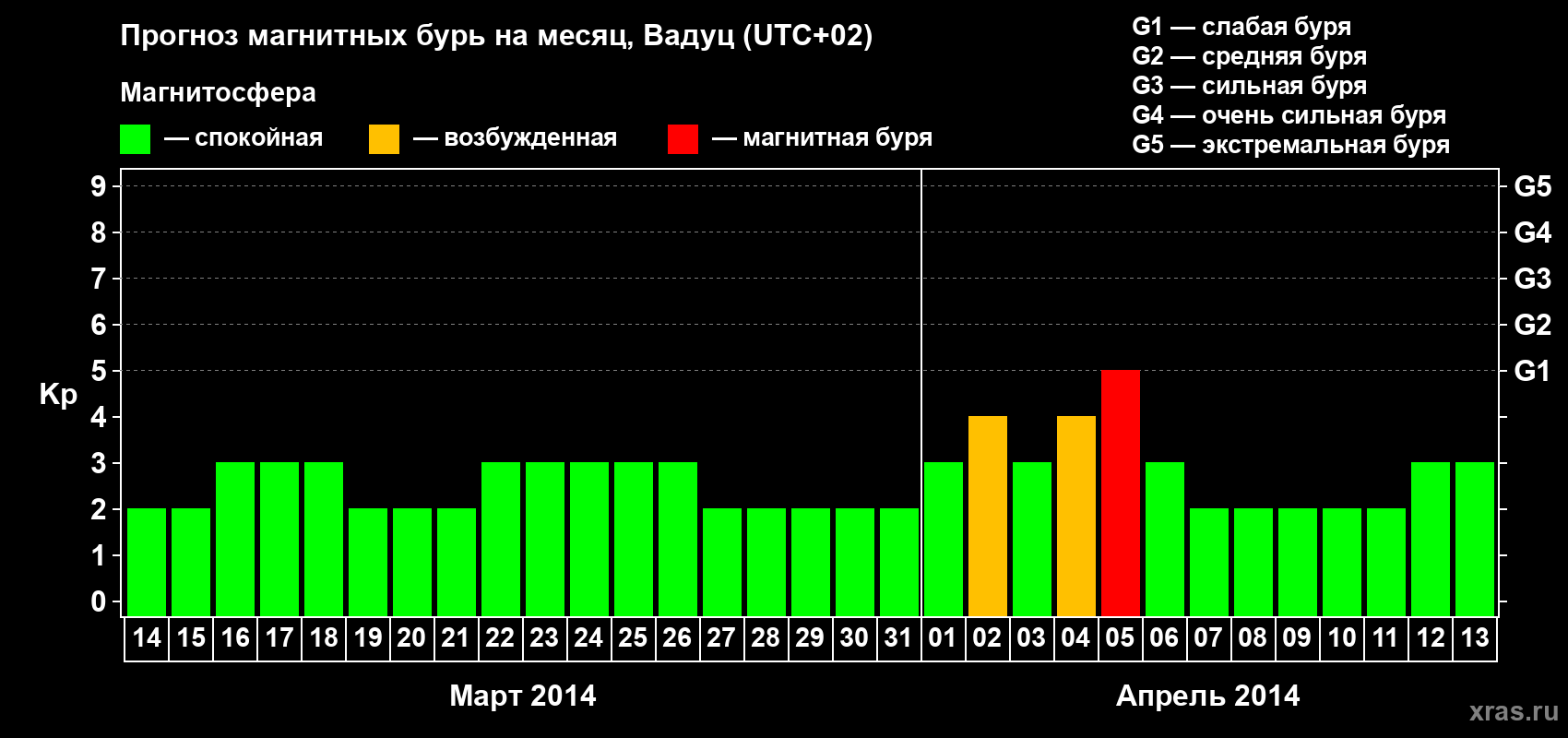 Прогноз магнитных бурь в Вадуце — 14 марта 2014 года