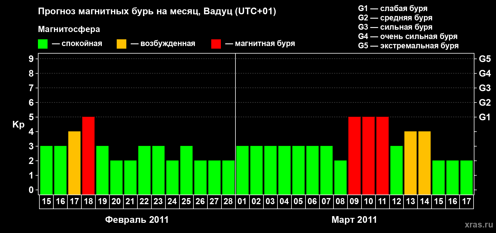 Прогноз магнитных бурь в Вадуце — 15 февраля 2011 года