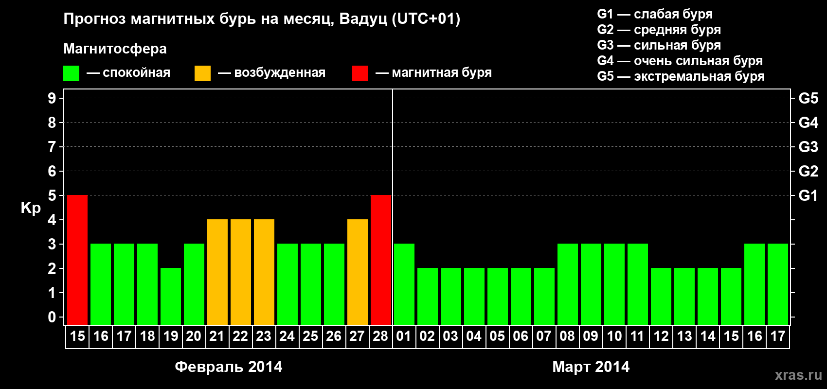 Прогноз магнитных бурь в Вадуце — 15 февраля 2014 года