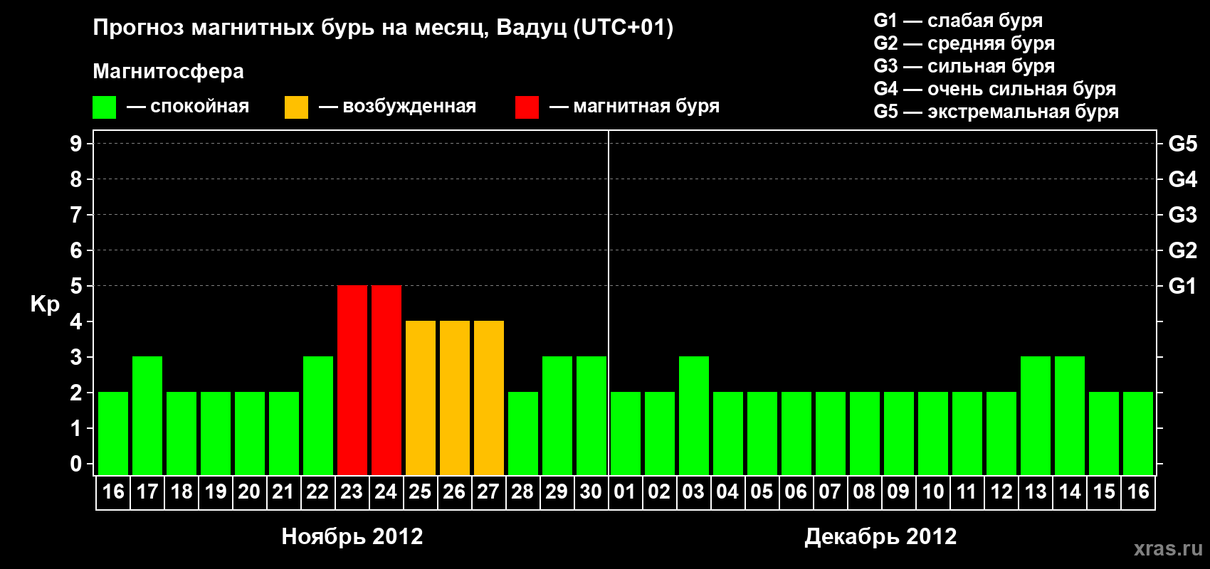 Прогноз магнитных бурь в Вадуце — 16 ноября 2012 года