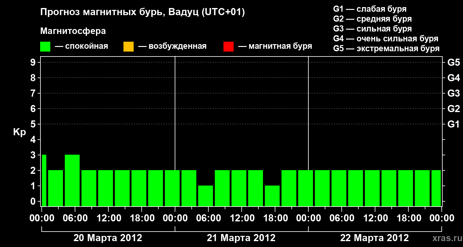 Прогноз магнитных бурь в Вадуце — 20 марта 2012 года