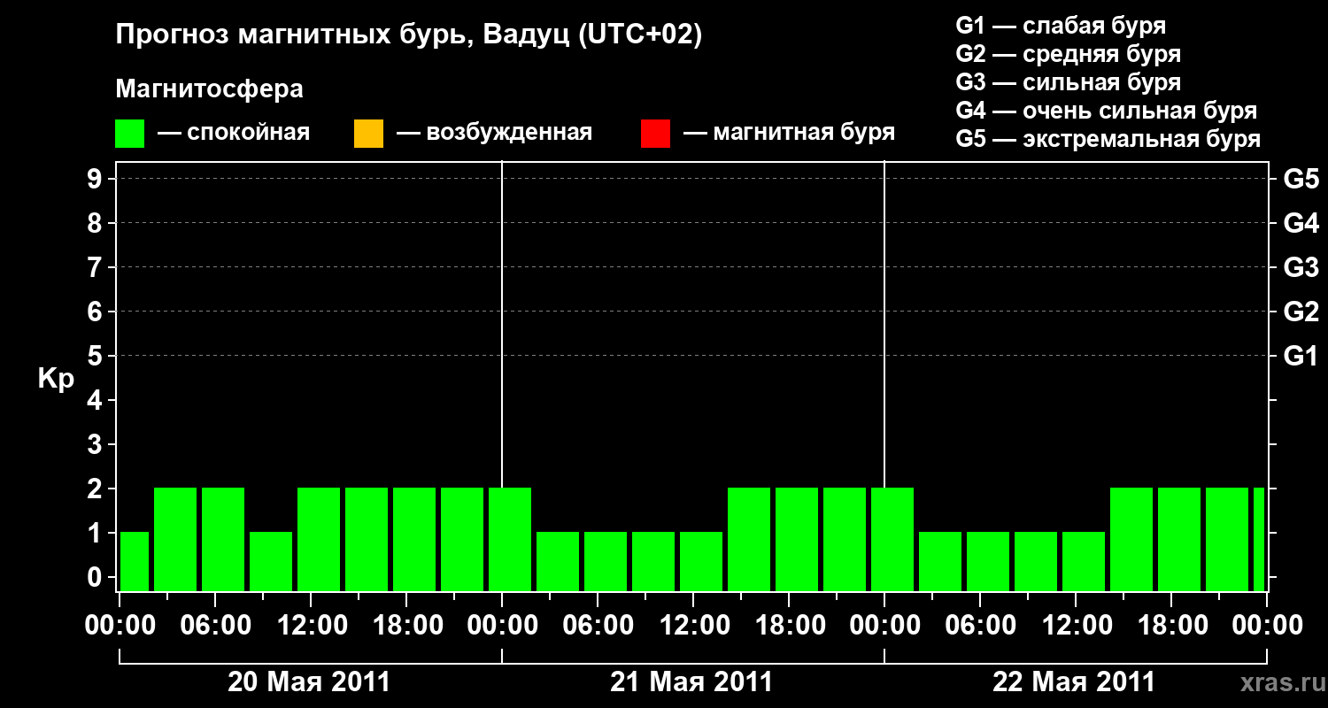 Прогноз магнитных бурь в Вадуце — 20 мая 2011 года