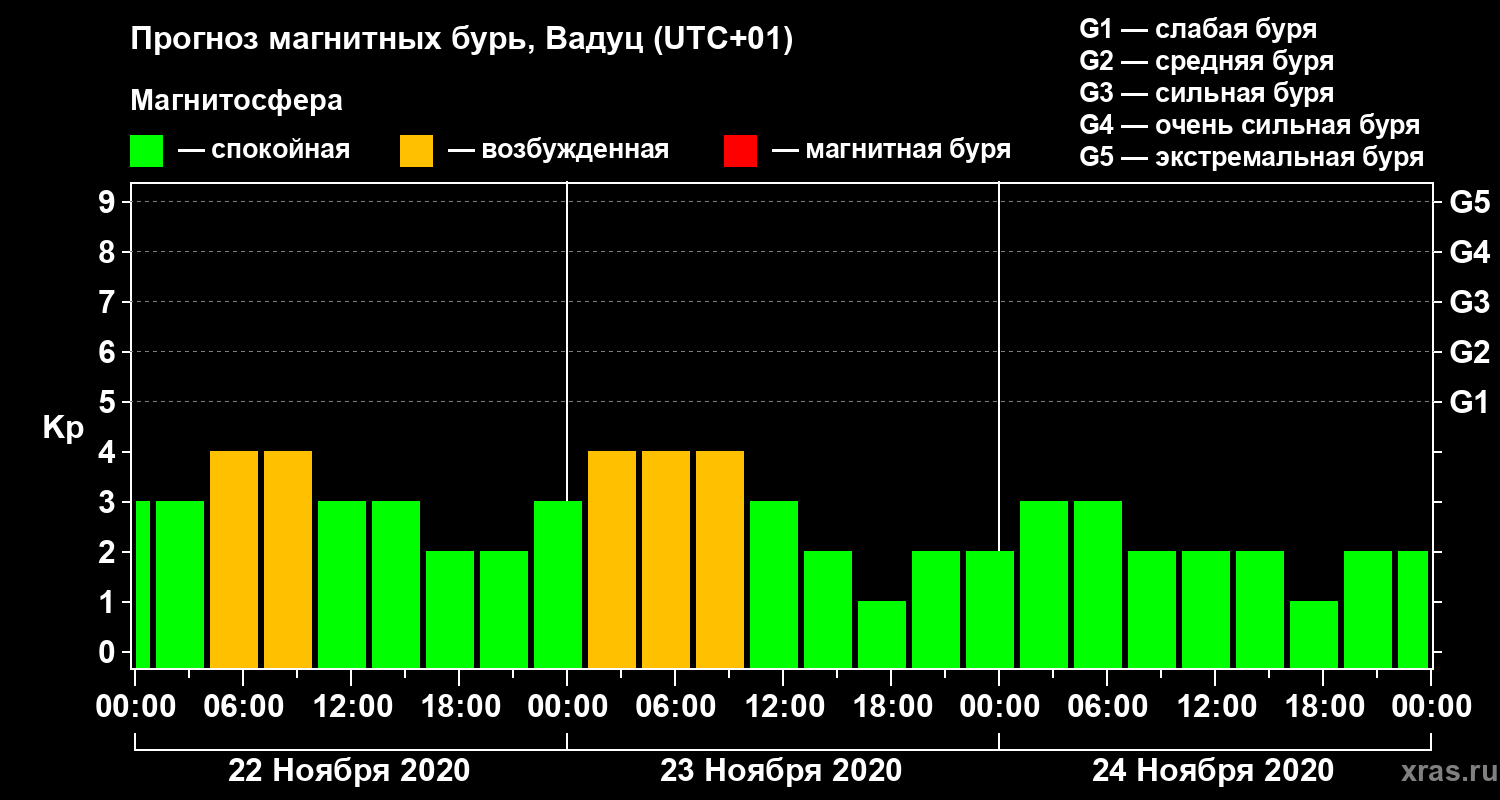 Прогноз магнитных бурь в Вадуце — 22 ноября 2020 года