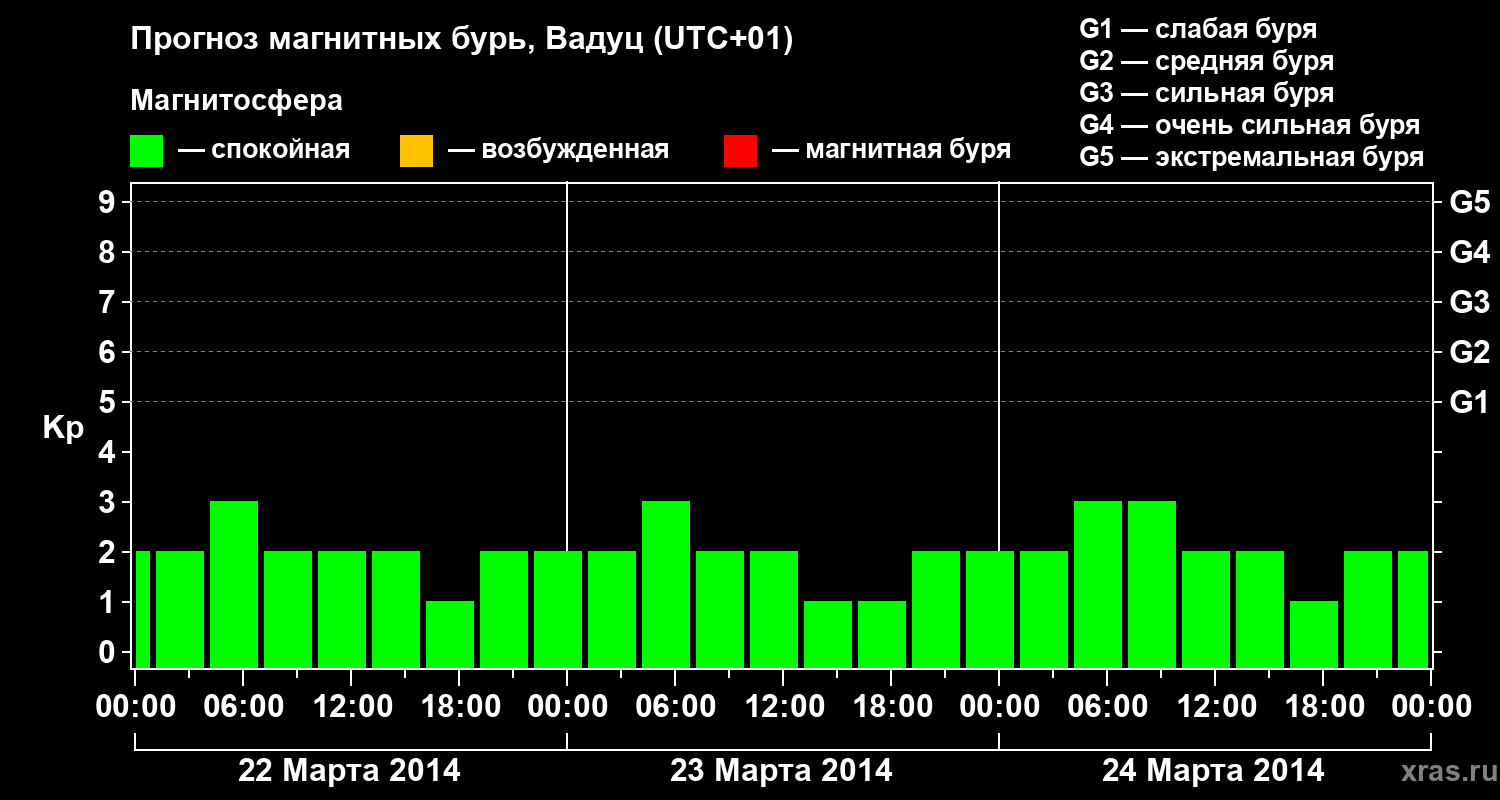 Прогноз магнитных бурь в Вадуце — 22 марта 2014 года