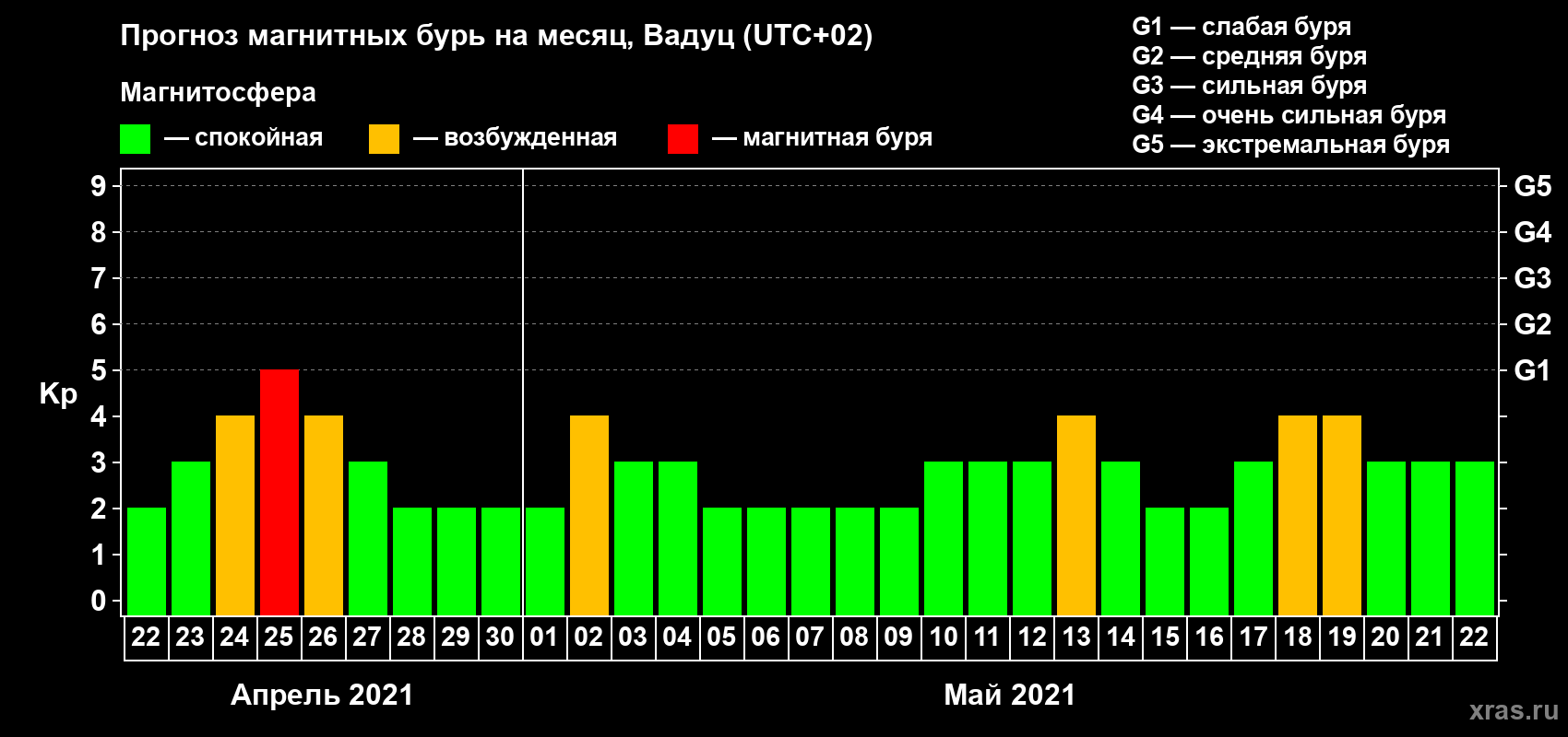 Прогноз магнитных бурь в Вадуце — 22 апреля 2021 года