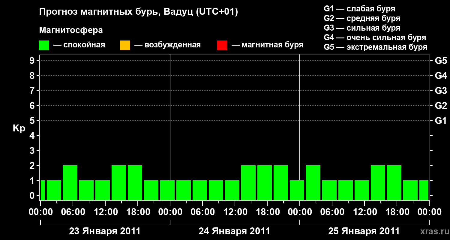 Прогноз магнитных бурь в Вадуце — 23 января 2011 года