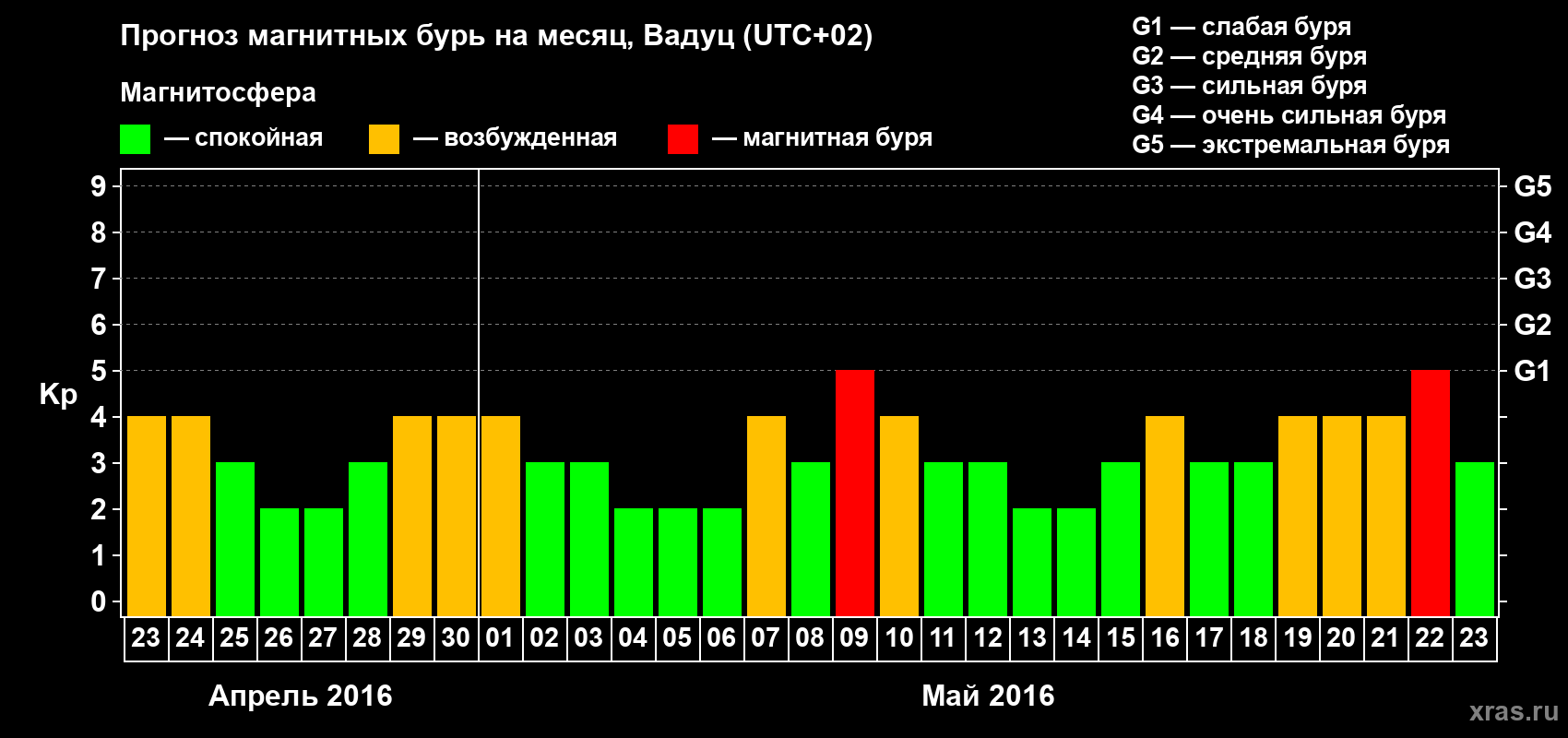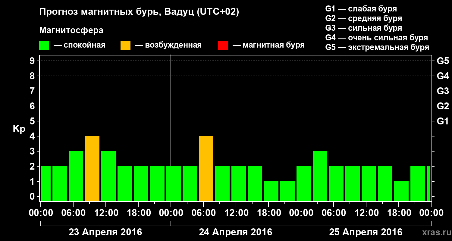 Прогноз магнитных бурь в Вадуце — 23 апреля 2016 года