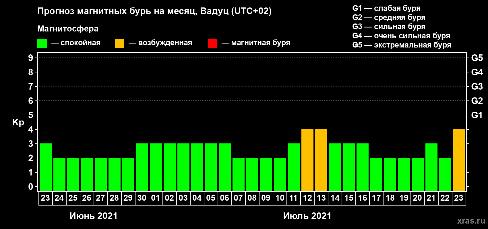 Прогноз магнитных бурь в Вадуце — 23 июня 2021 года