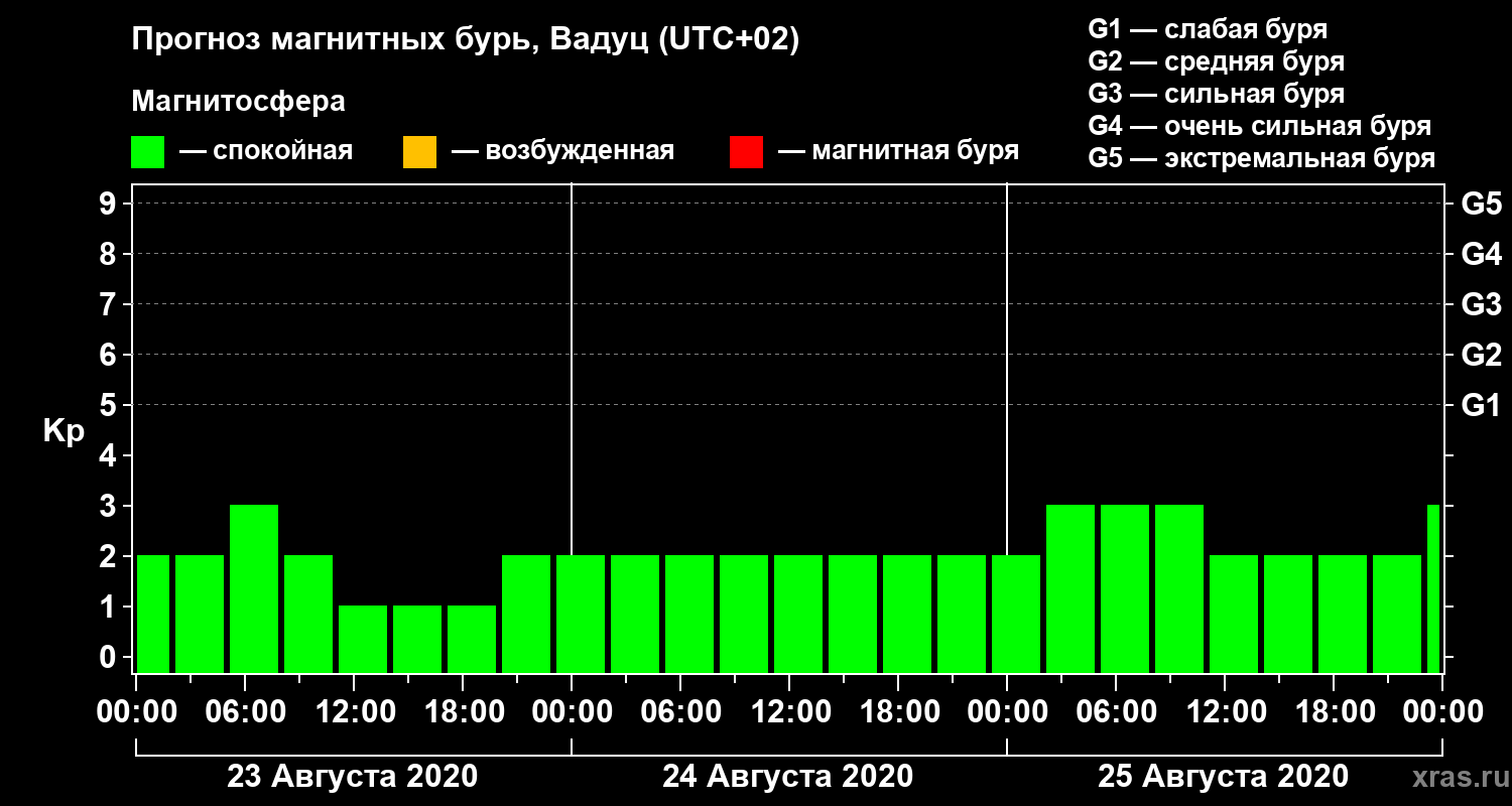 Прогноз магнитных бурь в Вадуце — 23 августа 2020 года
