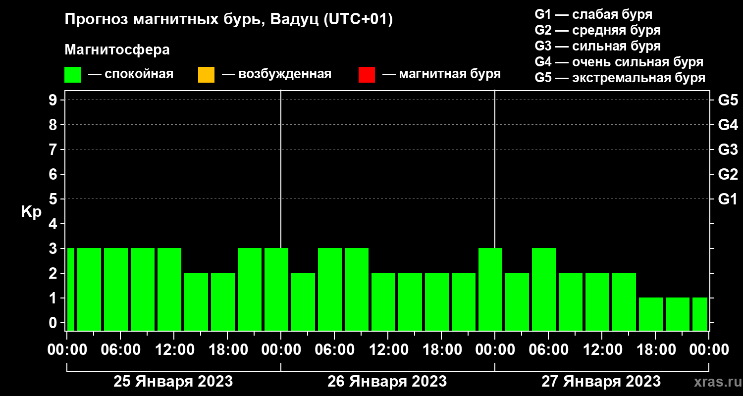 Прогноз магнитных бурь в Вадуце — 25 января 2023 года