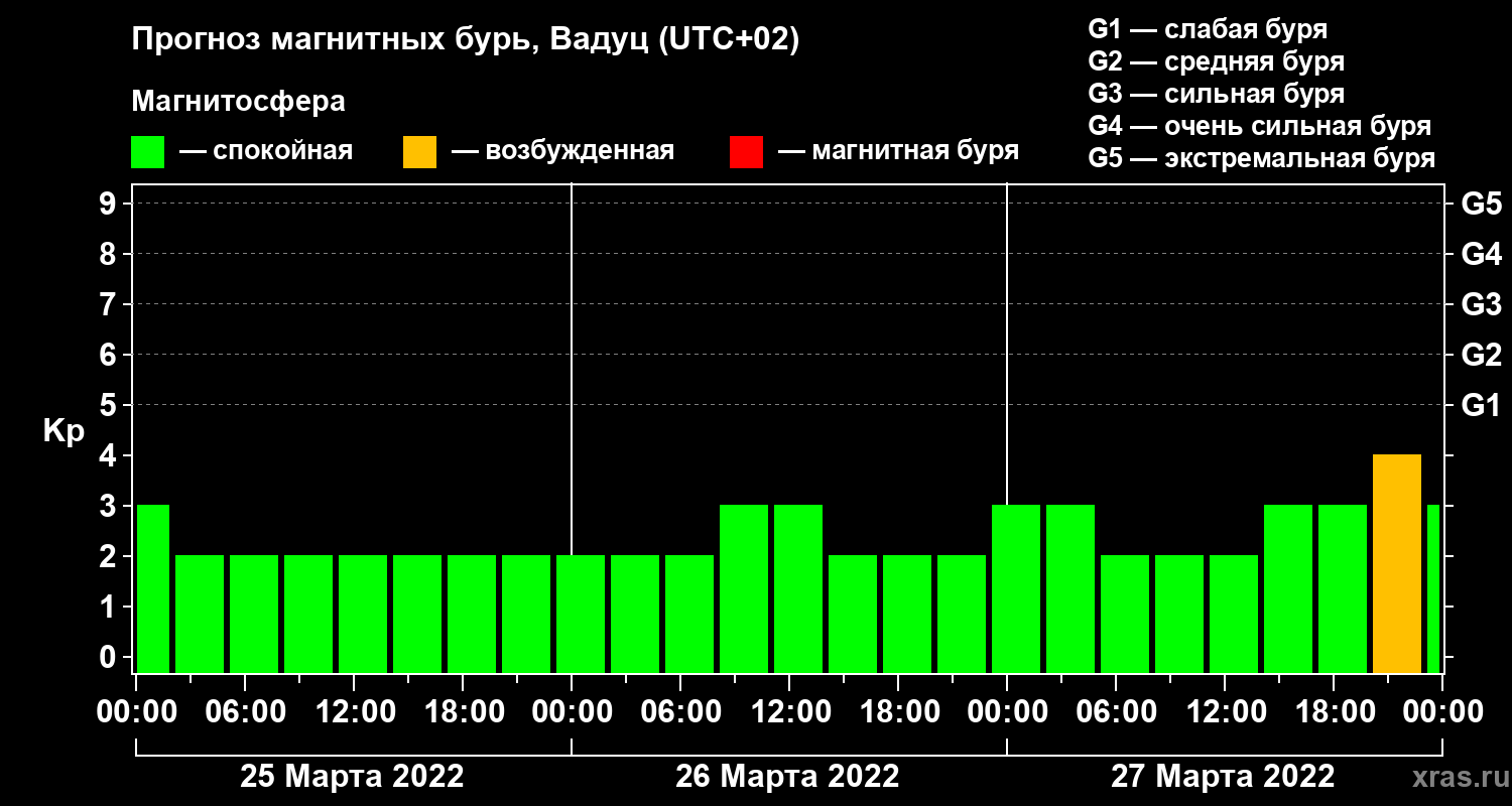 Прогноз магнитных бурь в Вадуце на 25 марта 2022 года