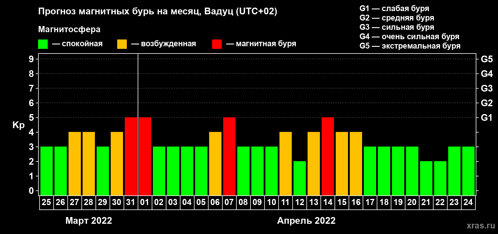 Прогноз магнитных бурь в Вадуце — 25 марта 2022 года