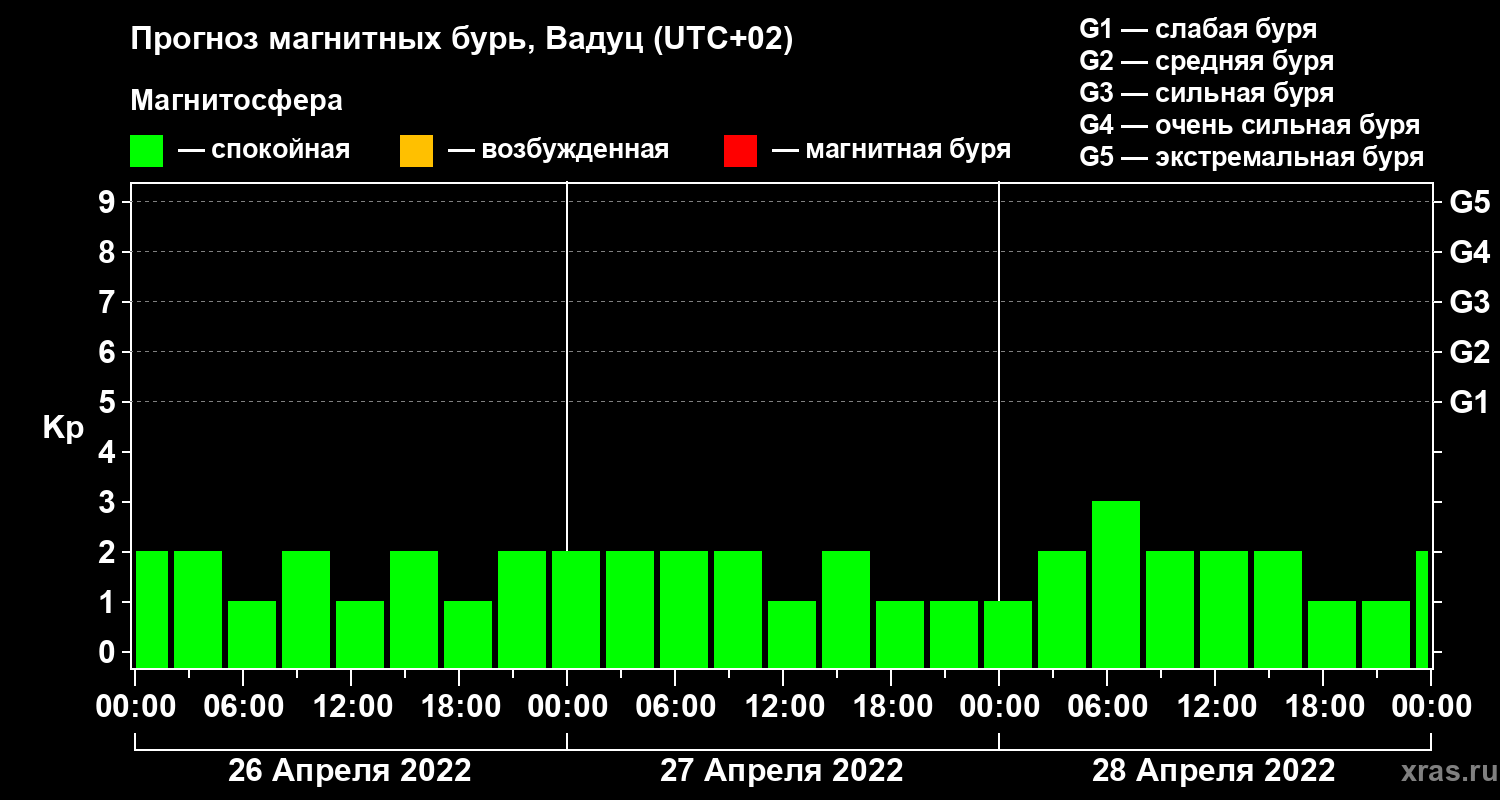 Прогноз магнитных бурь в Вадуце — 26 апреля 2022 года