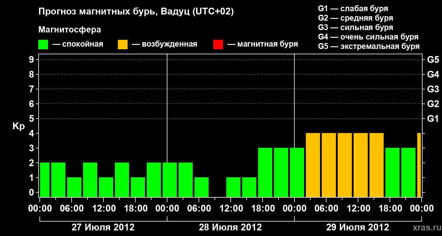 Прогноз магнитных бурь в Вадуце — 27 июля 2012 года