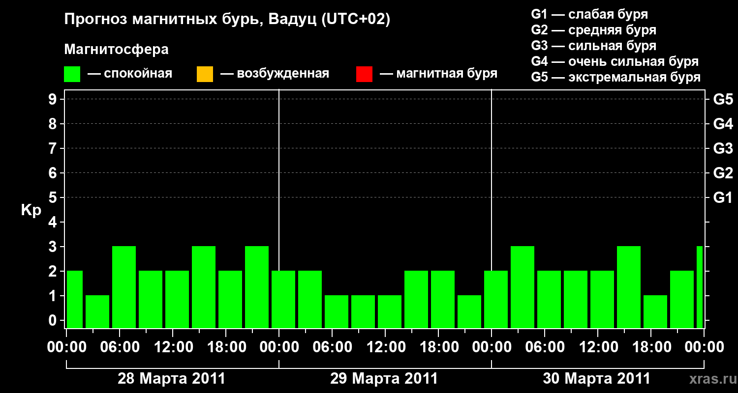 Прогноз магнитных бурь в Вадуце — 28 марта 2011 года