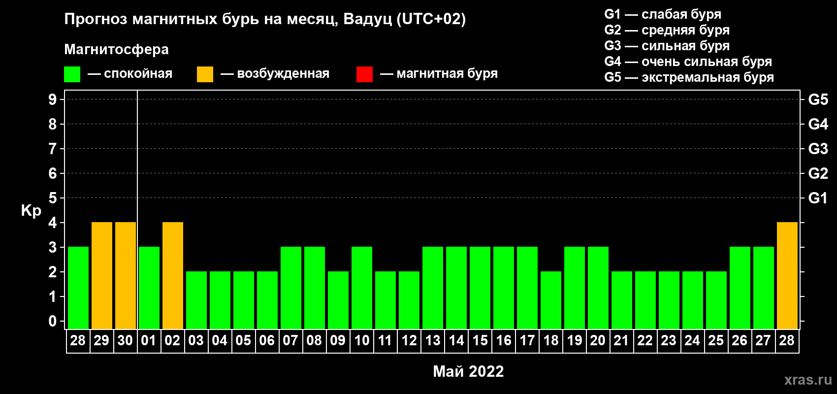Прогноз магнитных бурь в Вадуце — 28 апреля 2022 года