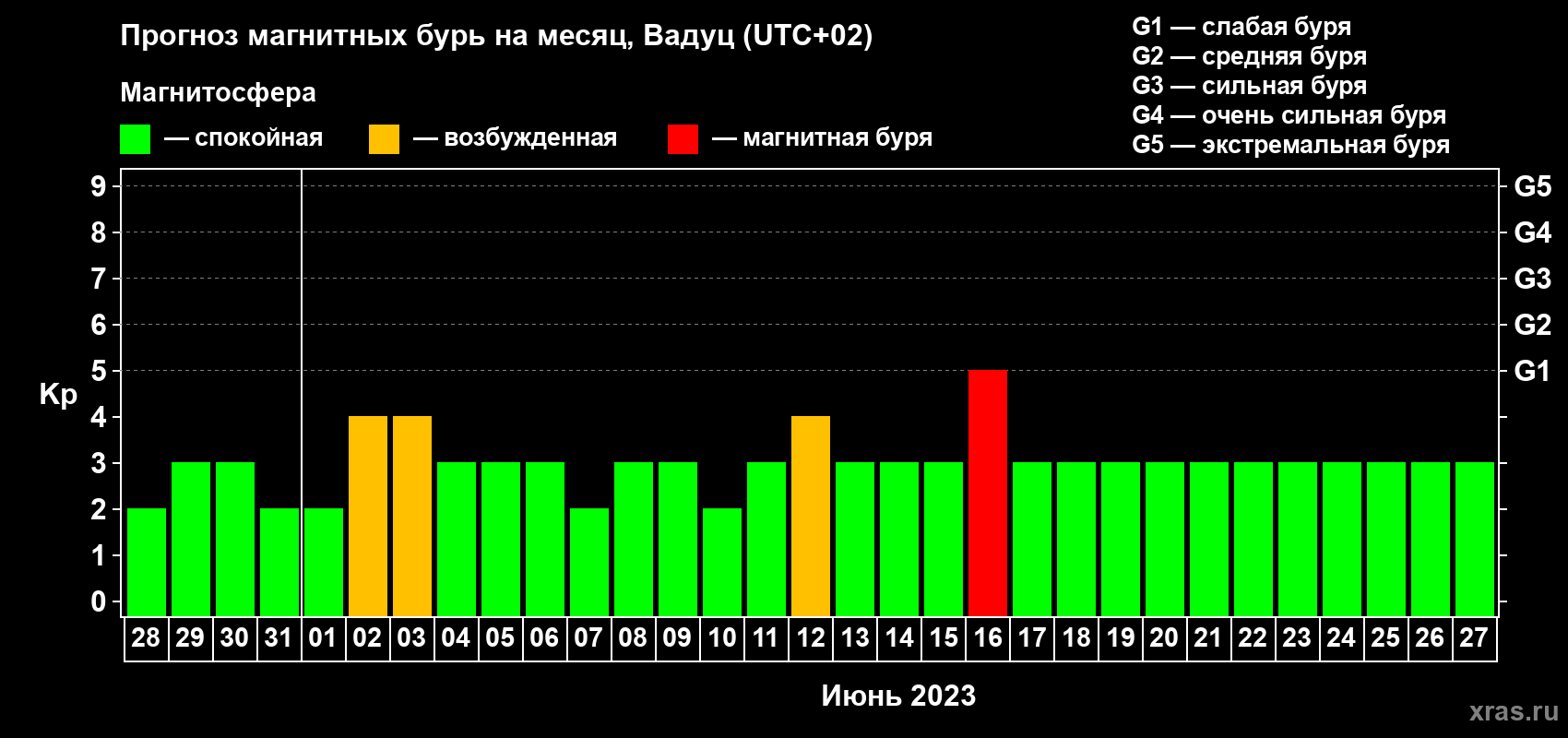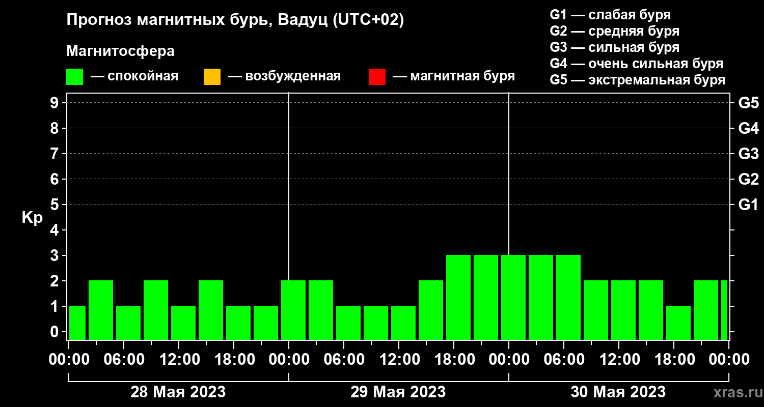 Прогноз магнитных бурь в Вадуце — 28 мая 2023 года