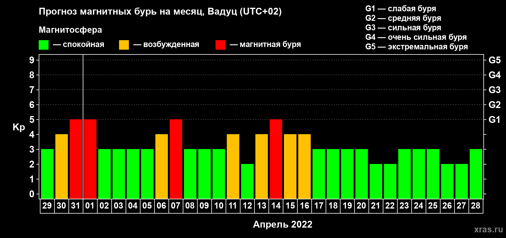 Прогноз магнитных бурь в Вадуце — 29 марта 2022 года