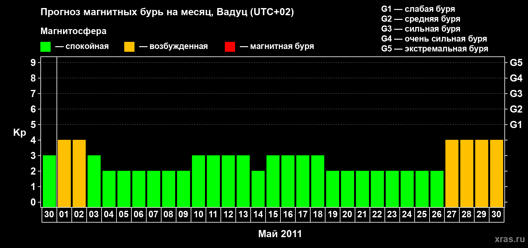 Прогноз магнитных бурь в Вадуце — 30 апреля 2011 года
