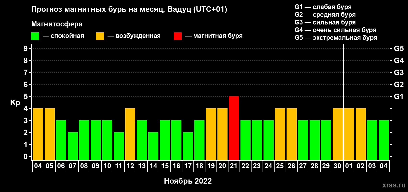 Прогноз магнитных бурь в Вадуце — 4 ноября 2022 года