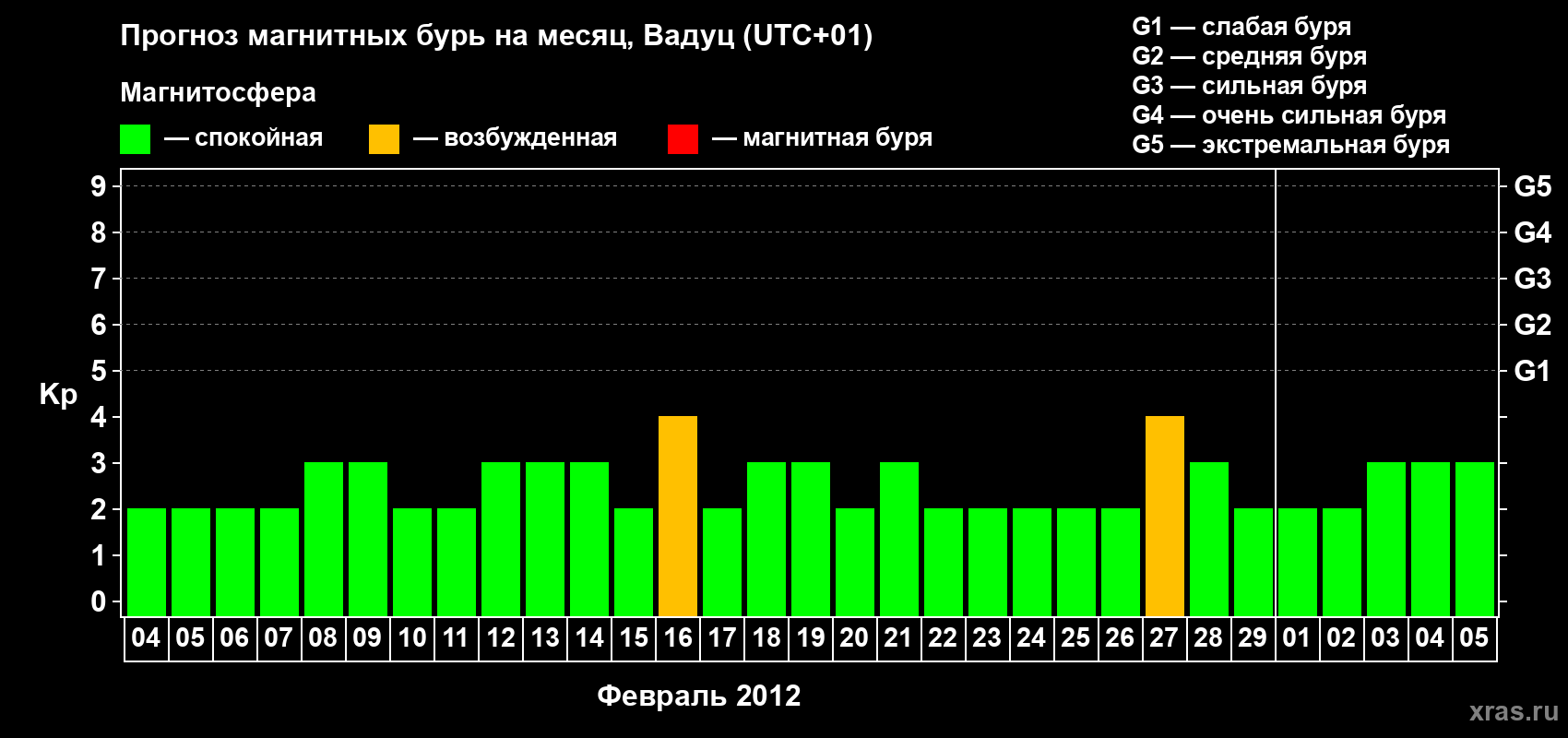 Прогноз магнитных бурь в Вадуце — 4 февраля 2012 года