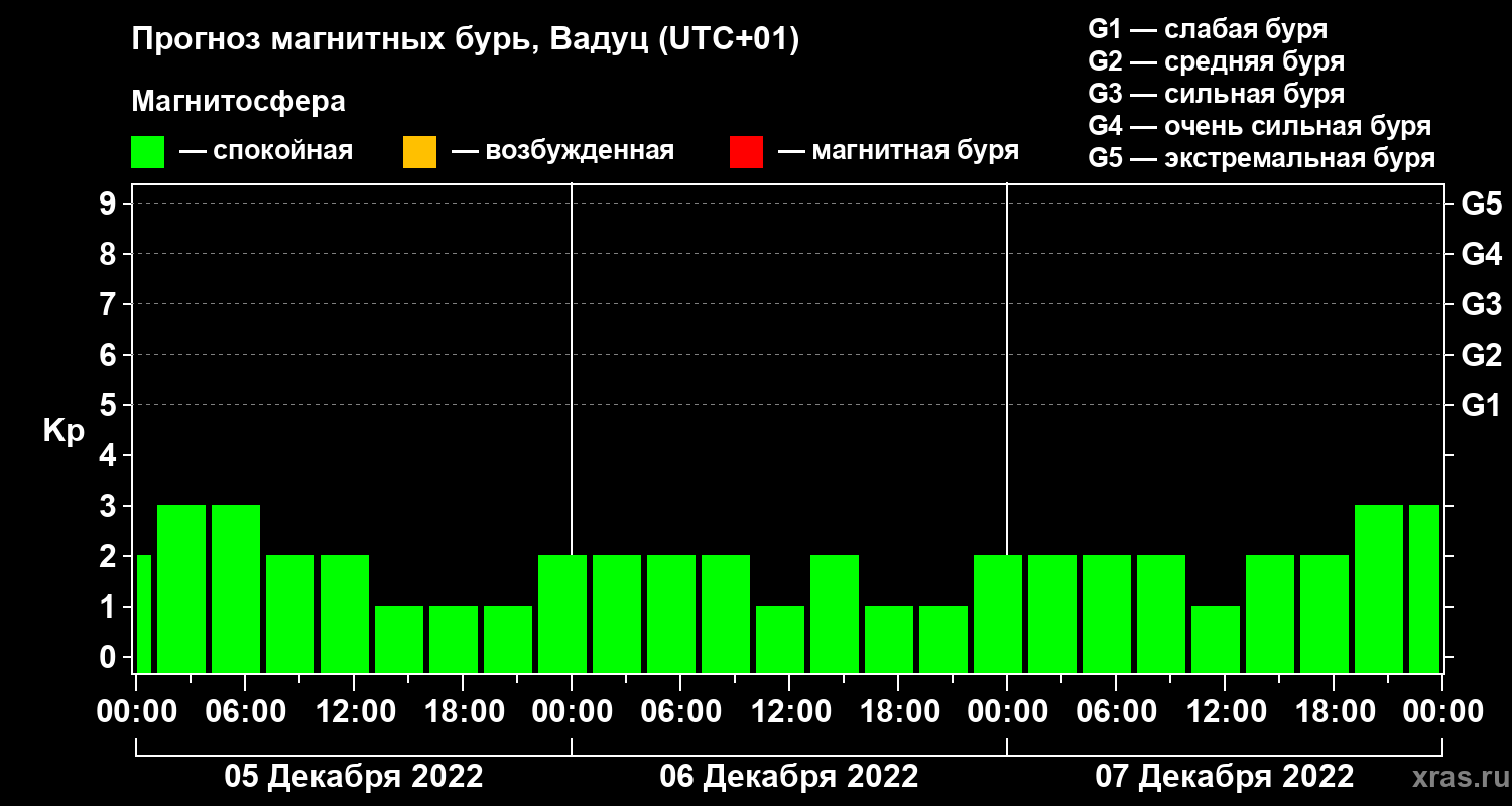 Прогноз магнитных бурь в Вадуце — 5 декабря 2022 года