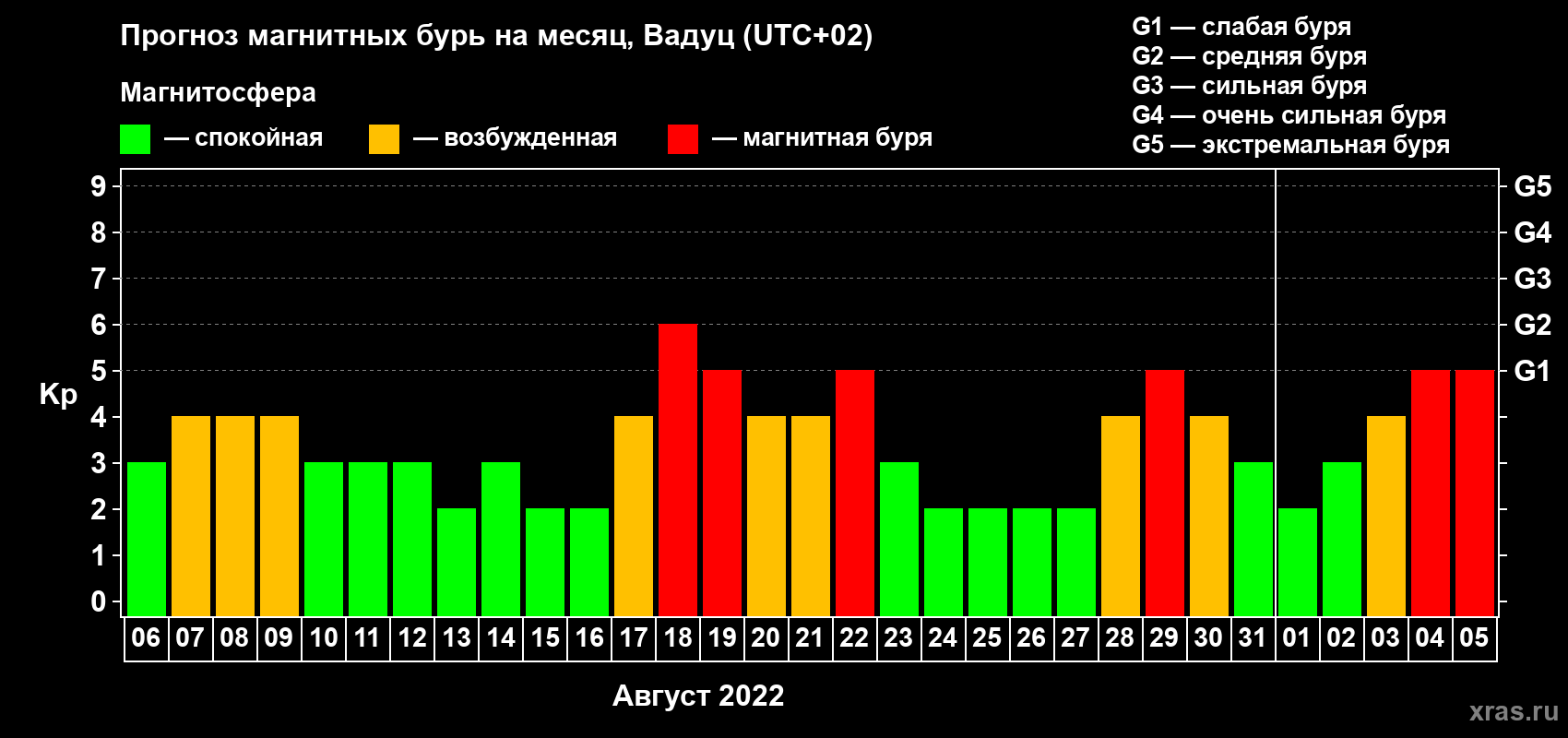 Прогноз магнитных бурь в Вадуце — 6 августа 2022 года
