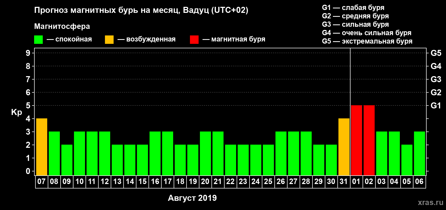 Прогноз магнитных бурь в Вадуце — 7 августа 2019 года