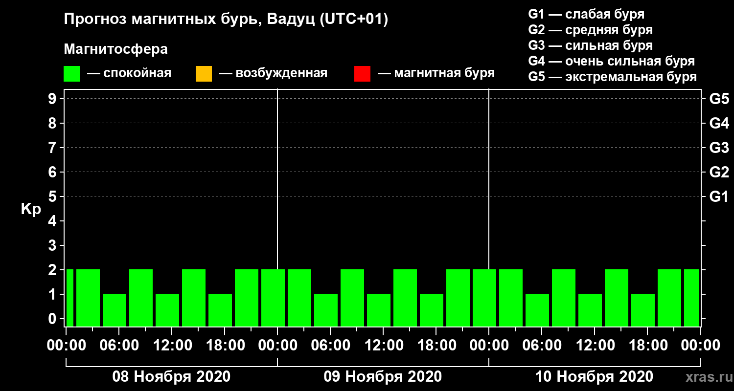 Прогноз магнитных бурь в Вадуце — 8 ноября 2020 года