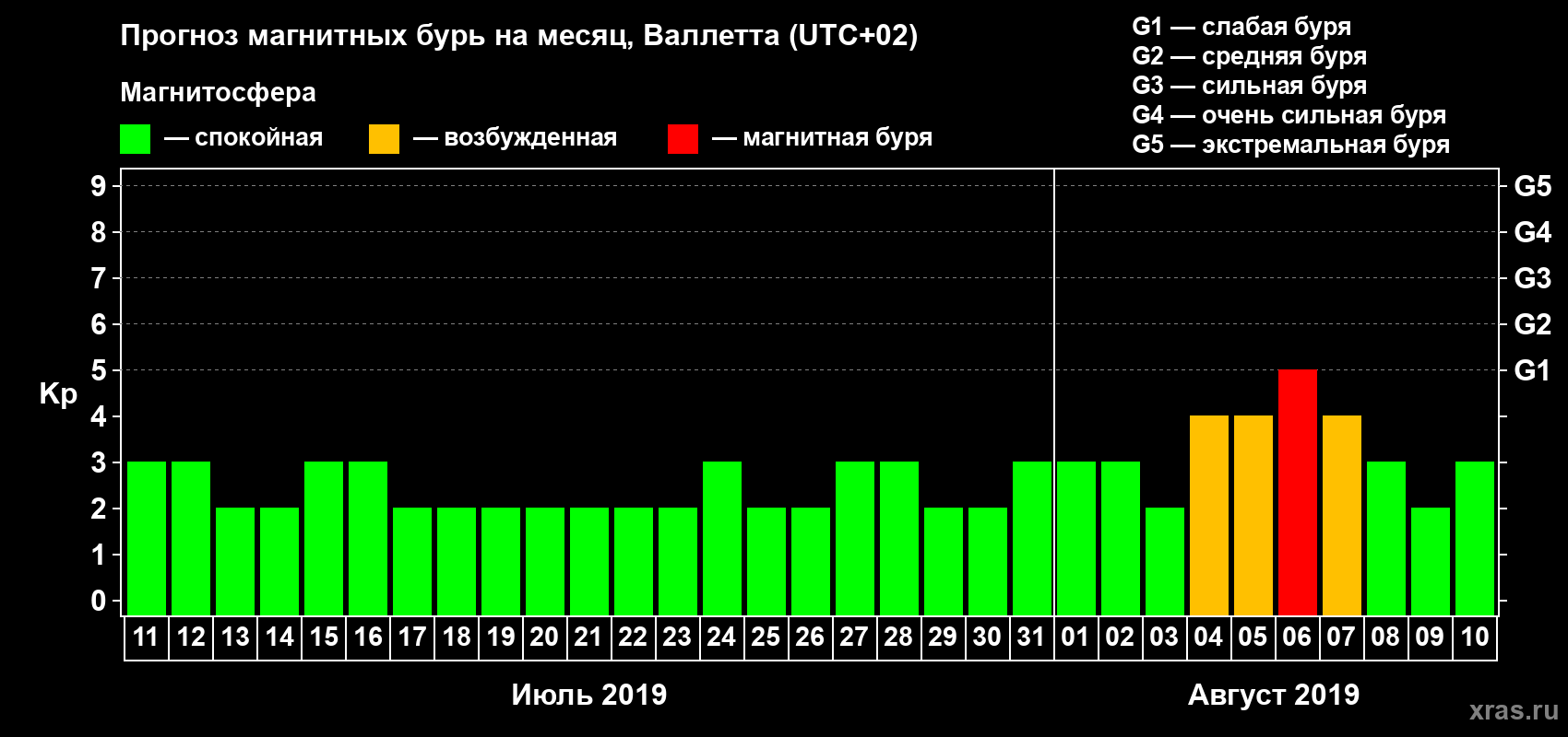 Прогноз магнитных бурь в Валлетте — 11 июля 2019 года