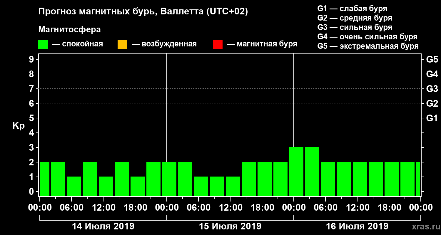 Прогноз магнитных бурь в Валлетте — 14 июля 2019 года