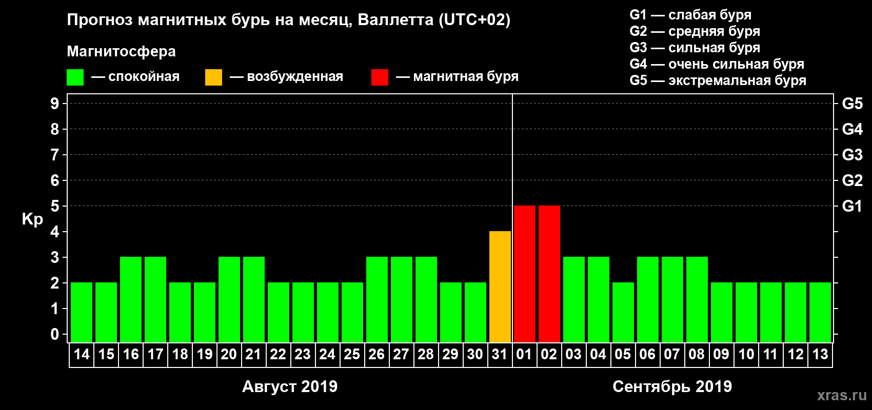 Прогноз магнитных бурь в Валлетте — 14 августа 2019 года