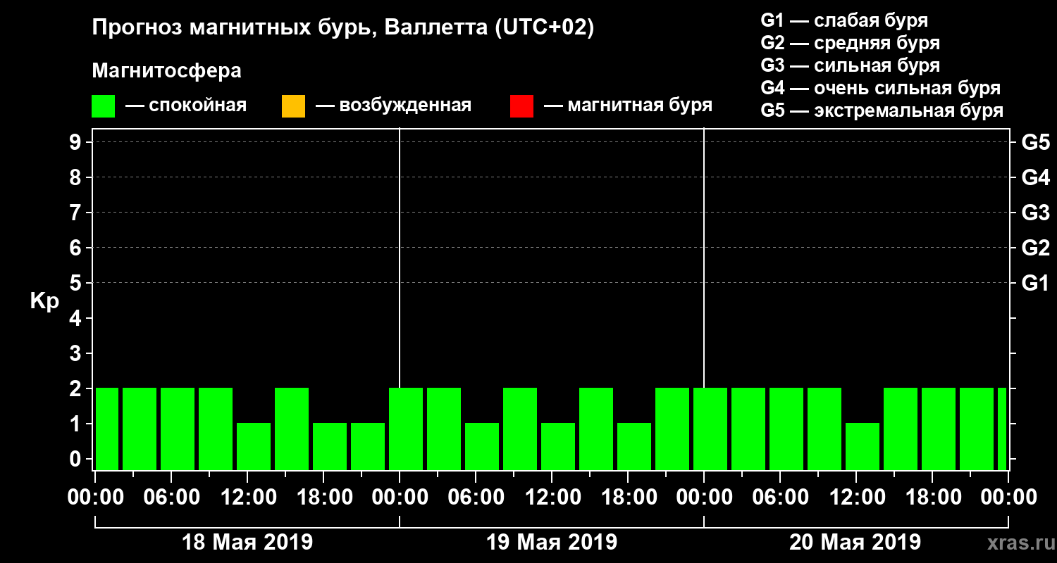 Прогноз магнитных бурь в Валлетте — 18 мая 2019 года