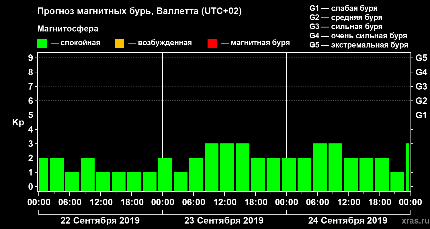 Прогноз магнитных бурь в Валлетте на 22 сентября 2019 года