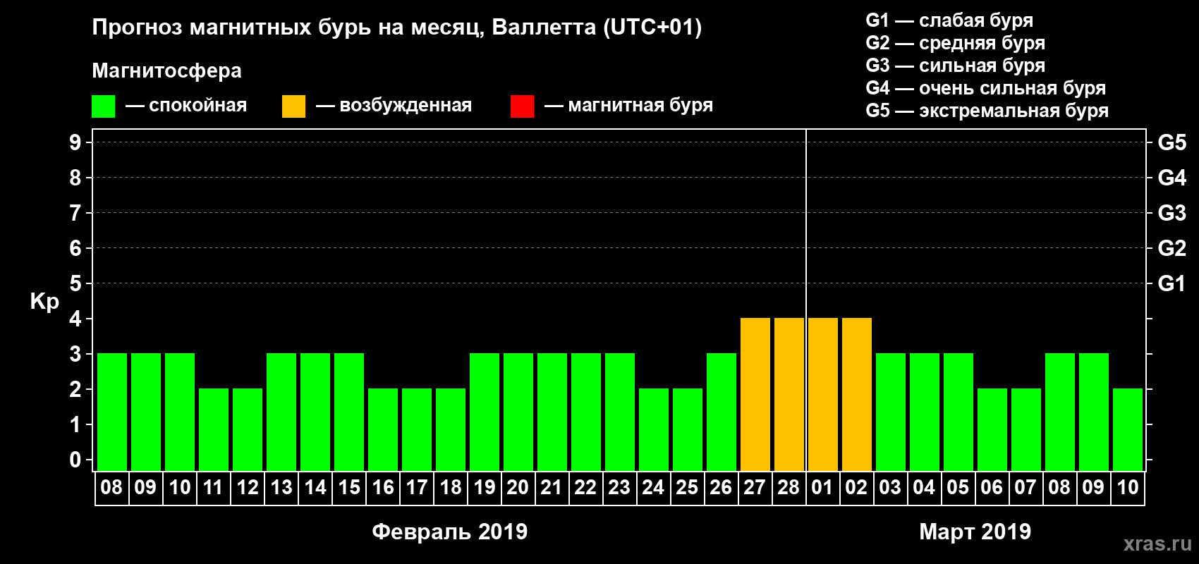 Прогноз магнитных бурь в Валлетте — 8 февраля 2019 года