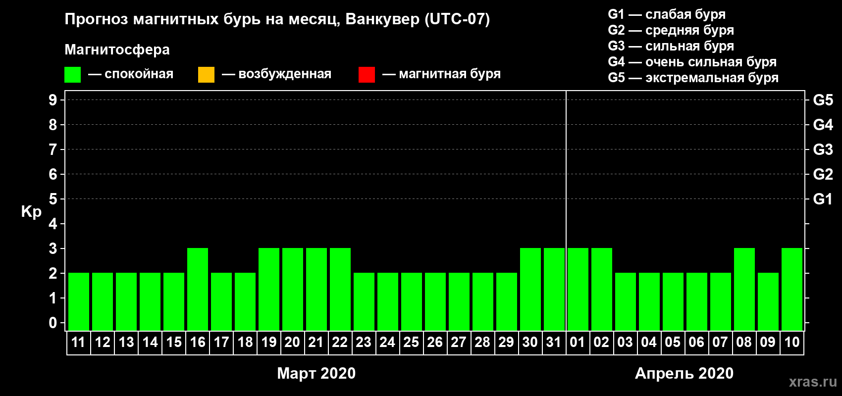 Прогноз магнитных бурь в Ванкувере — 11 марта 2020 года
