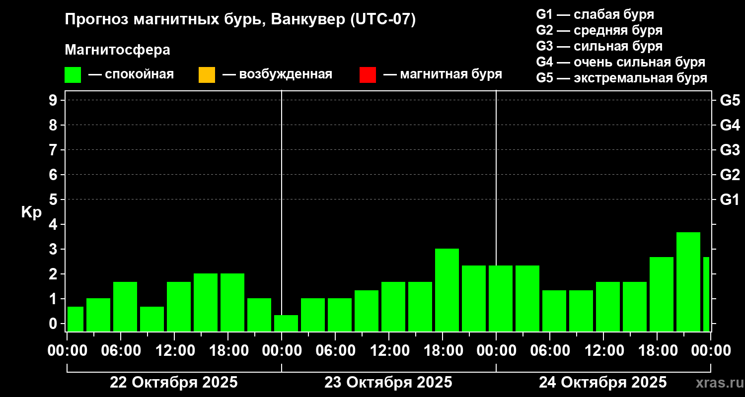Прогноз магнитных бурь в Ванкувере на 22 октября 2025 года