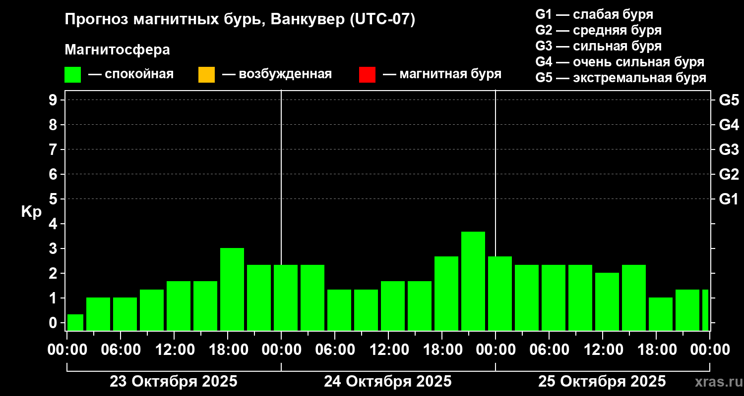 Прогноз магнитных бурь в Ванкувере на 23 октября 2025 года