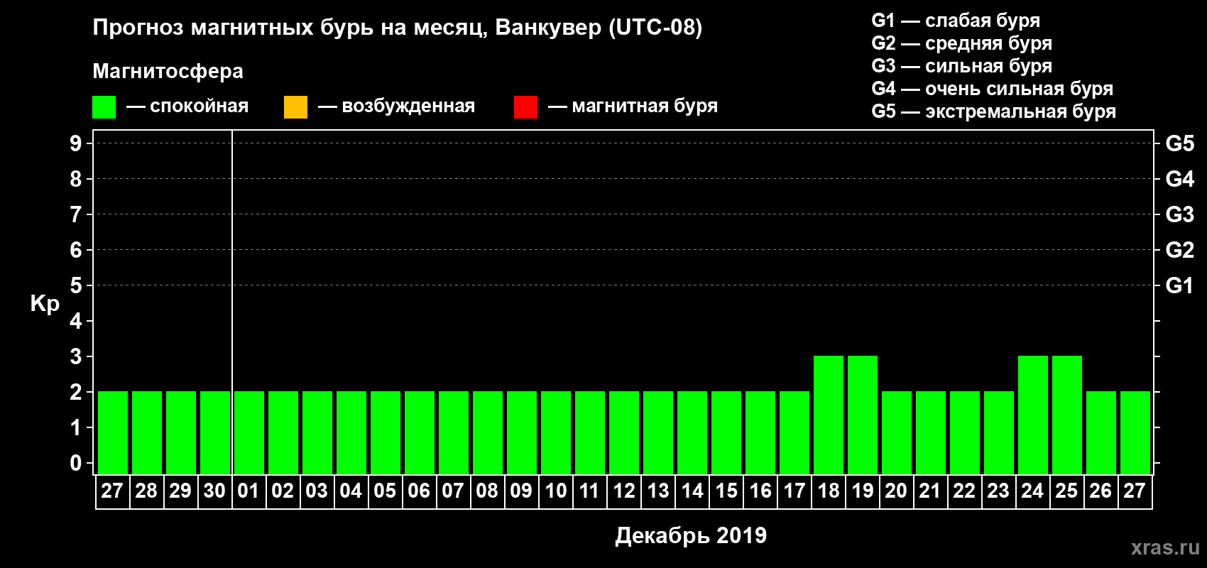 Прогноз магнитных бурь в Ванкувере — 27 ноября 2019 года