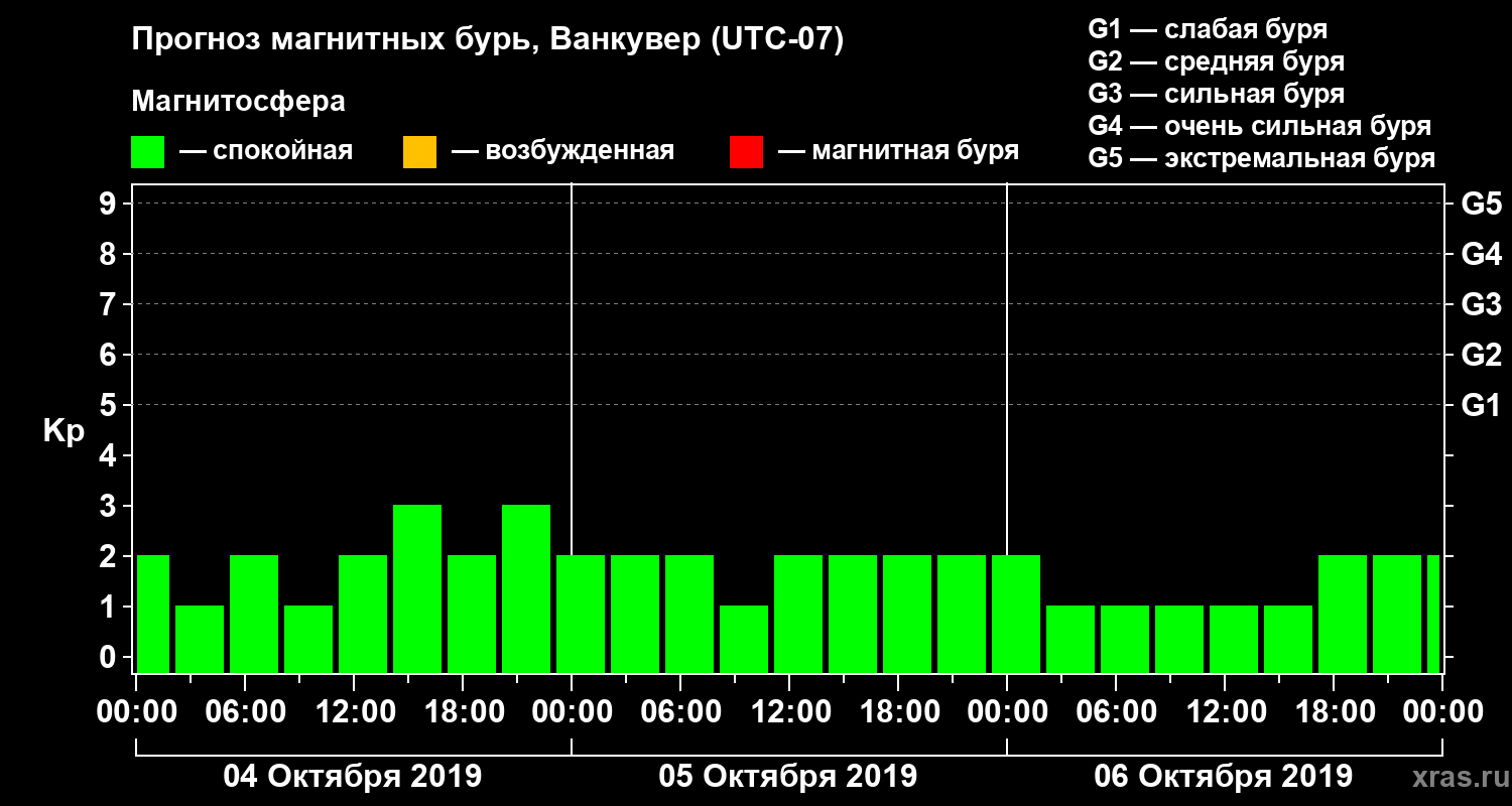 Прогноз магнитных бурь в Ванкувере — 4 октября 2019 года