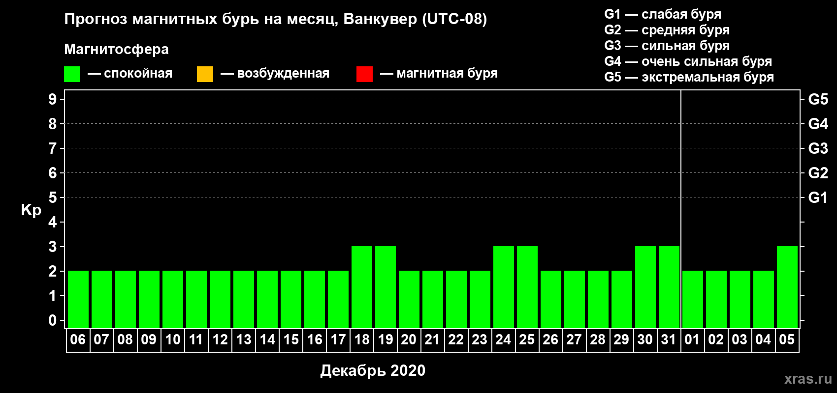 Прогноз магнитных бурь в Ванкувере — 6 декабря 2019 года