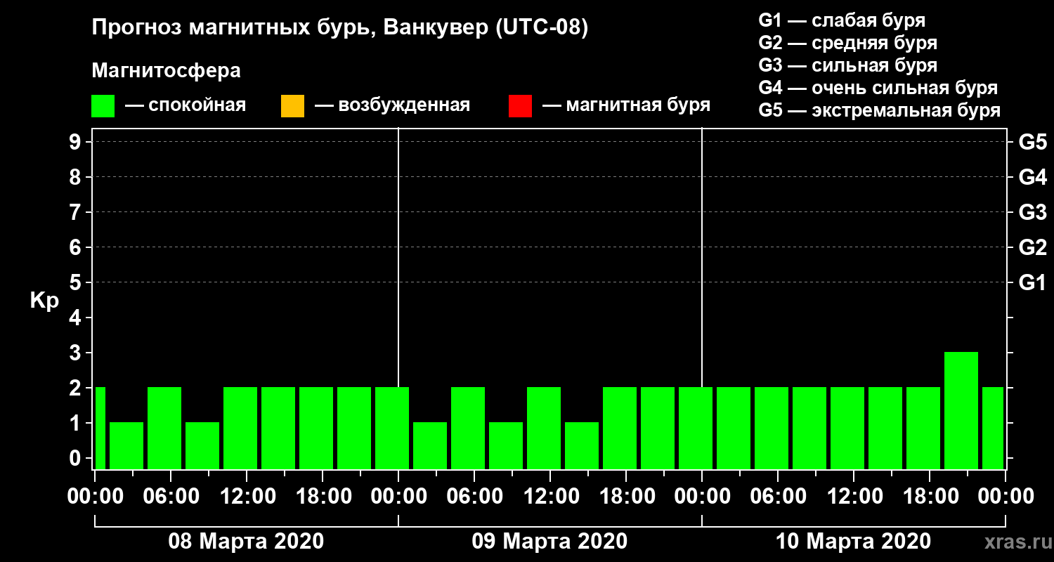 Прогноз магнитных бурь в Ванкувере — 8 марта 2020 года