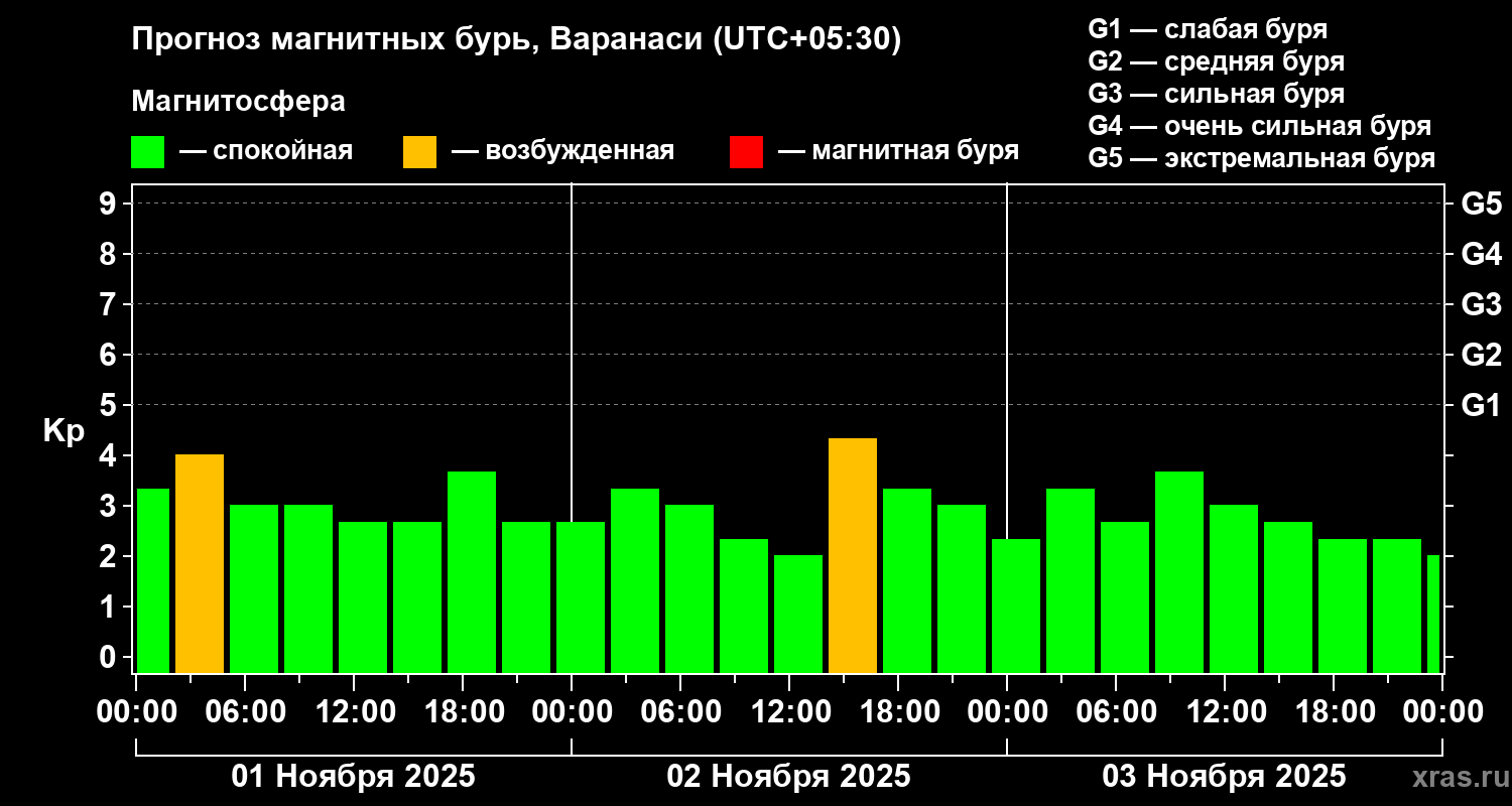 Прогноз магнитных бурь Варанаси — 1 ноября 2025 года