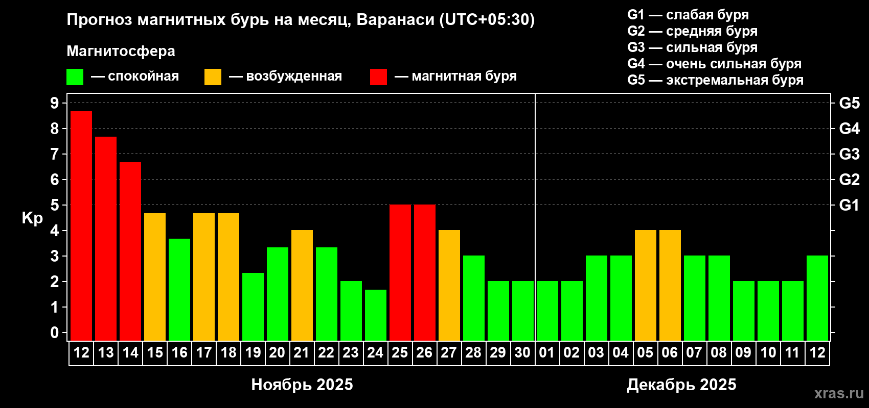 Прогноз магнитных бурь Варанаси — 12 ноября 2025 года