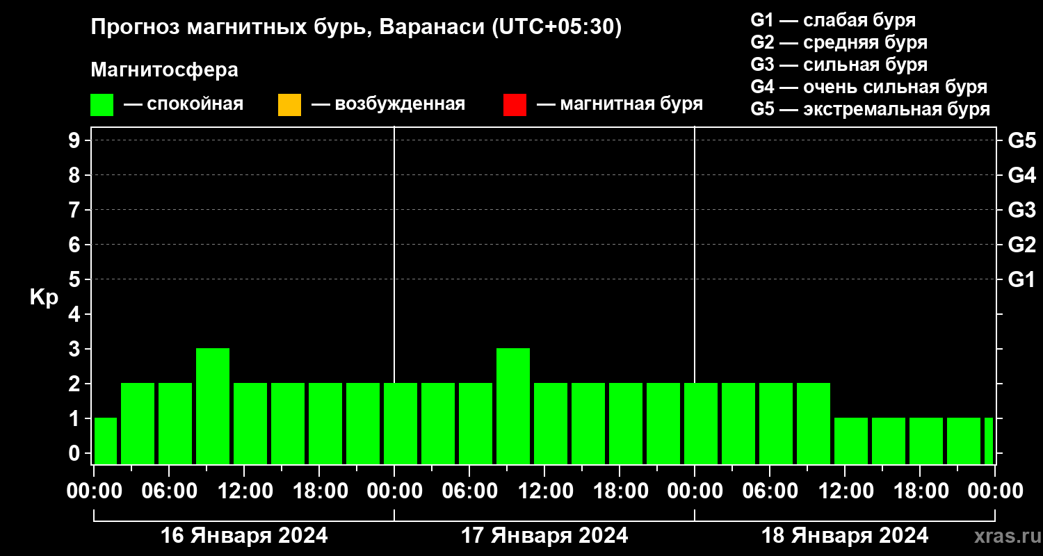 Прогноз магнитных бурь Варанаси — 16 января 2024 года